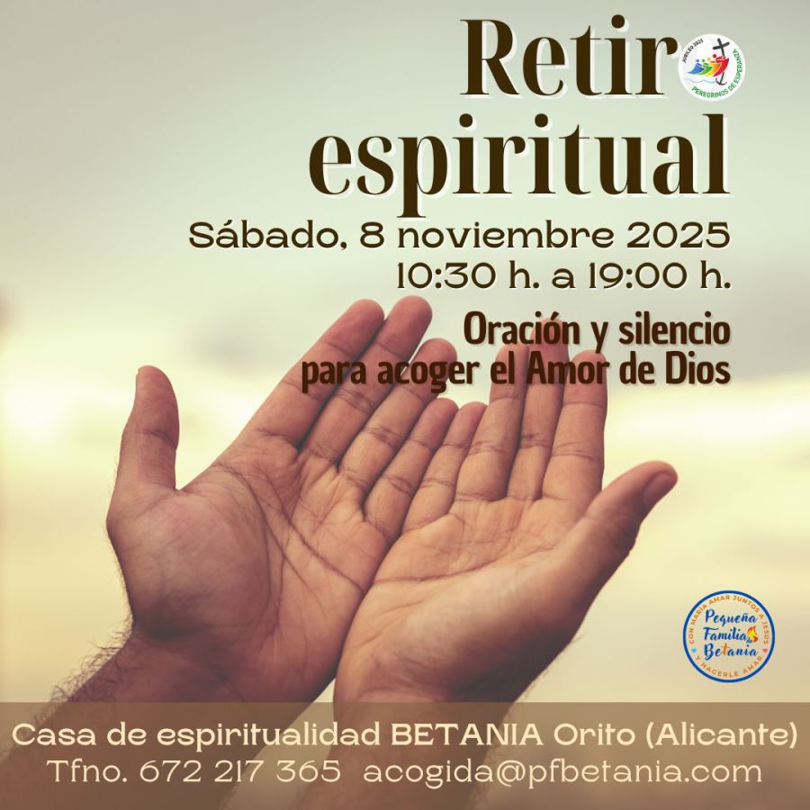 ÚNETE al whatsapp oficial de la Pequeña Familia de Betania donde se envía cada día un texto para la oración personal o comunitaria, o las palabras actuales del Papa, o se destaca la vida de un santo o santa, o noticias sobre la vida de la PFBetania, etc.